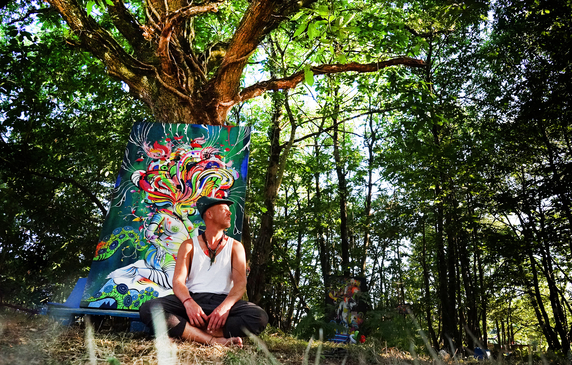 This multi-talented storyteller (musician, trapeze artist, graphic designer, videographer, poet, fairy tamer…) who left Paris to immerse himself in the nature of the Breton swamps, sets the scene of his art in the midst of the universe he imagined for it.