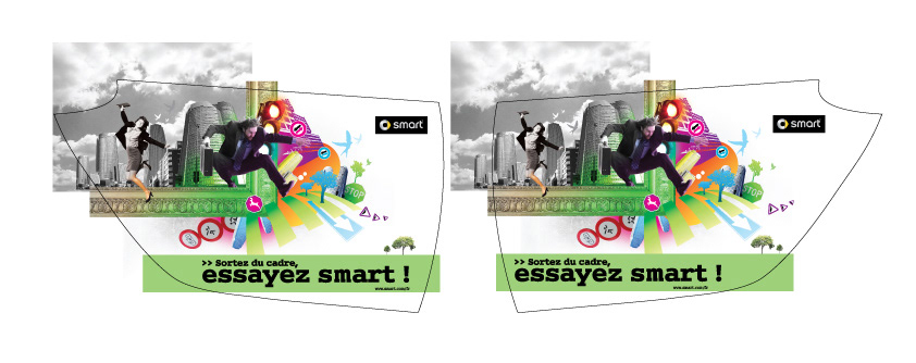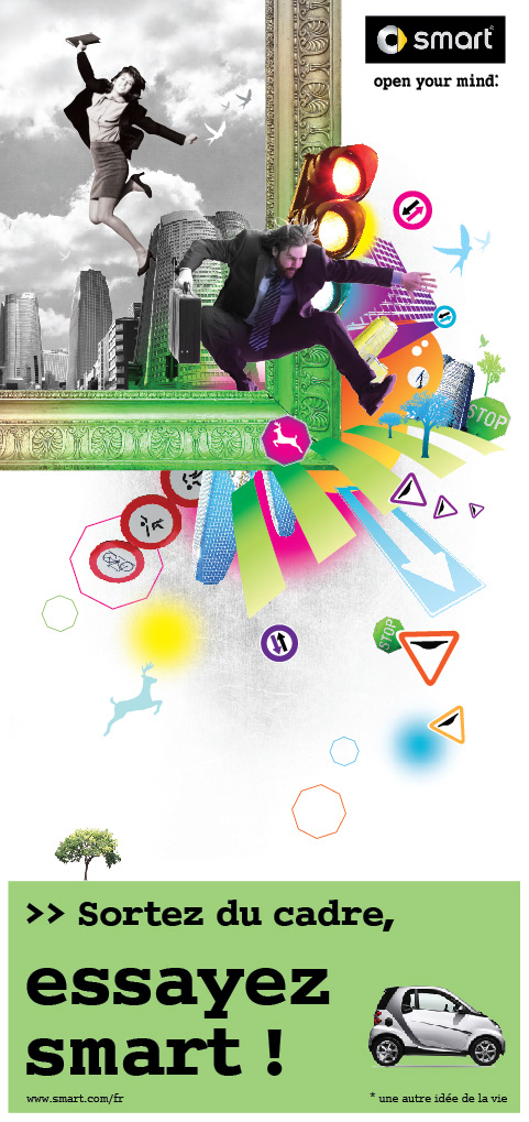 Identity and Illustration for Smart trials all over France. "Sortez du cadre / Get of the screen" Client : Lever de rideau. 2010