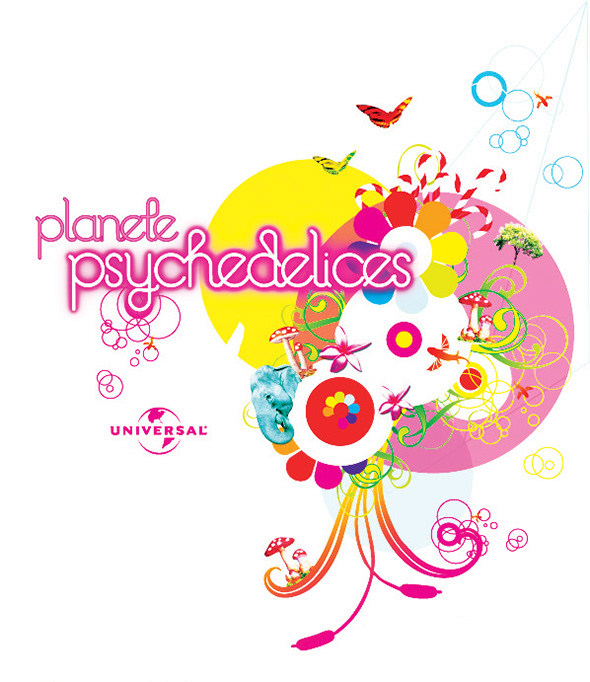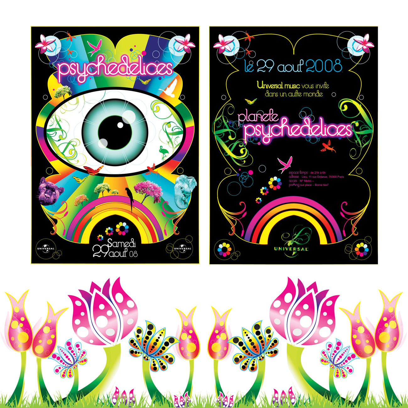 Identity & Illustrations for Universal Music's annual party 'Planète Psychédélices". Client : I Love Events. 2010